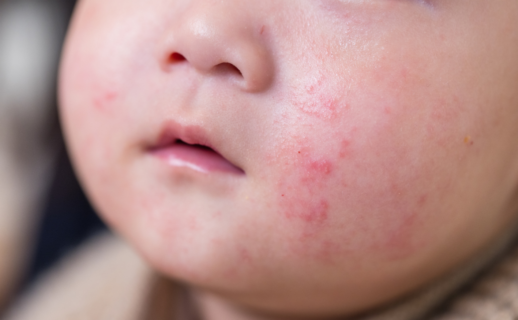 寶寶原本細緻的臉蛋怎麼突然變得紅通通而且一顆一顆的呢?其實新生兒臉起疹子為正常現象,可能在出生幾天後、3個月大左右甚至1歲前都可能發生,通常嬰兒的紅疹不痛不癢,過陣子就會自動消失,但有些起疹狀況卻會讓寶寶不舒服且反覆發生。現在就讓我們來認識嬰兒臉紅紅一塊的可能原因、表現症狀以及如何照顧與治療。嬰兒臉紅紅一塊是怎麼了?寶寶臉部紅疹的可能原因新生兒的肌膚薄且細嫩,加上體內荷爾蒙影響,時常在剛出生的幾天後出現有新生兒座瘡之稱的粟粒疹與毒性紅斑。粟粒疹通常只出現在寶寶臉上,而紅疹中可能帶著膿胞狀粉刺;毒性紅斑則在臉上與手掌、腳底都可能出現,但不會有粉刺產生,而且會自然痊癒無需擔心。不過嬰兒臉紅紅一塊還有其他可能性,像是濕疹、熱疹、異位性皮膚炎與脂漏性皮膚炎等,都可能會讓寶寶臉部出現紅疹。以下我們針對這4種寶寶發疹狀況做說明。 延伸閱讀:寶寶皮膚粗糙乾燥嗎?嬰兒常見皮膚問題與注意事項總整理新生兒臉上紅疹怎麼辦?4大寶寶常見皮膚起疹症狀說明嬰兒出生後的肌膚會因為環境含水量與新陳代謝、荷爾蒙與各種外界刺激影響,出現脫皮、臉上一顆一顆的或是看起來紅紅一片,一般來說為正常現象不用在意,但如果出現以下4種皮膚起疹症狀,就需要持續觀察,嚴重時更應盡速就醫。1.濕疹濕疹為一種皮膚症狀的總稱,有濕疹部位的肌膚會異常乾燥,並伴隨難以忍耐的搔癢感,寶寶容易因皮膚發癢而時不時摳抓,如果不慎抓出傷口並感染會使症狀更嚴重,需立刻就醫治療。觸發濕疹的原因很複雜,像是對皮膚有刺激性的沐浴乳、衣物洗滌產品或是居家打掃使用的清潔劑都可能是過敏原,所以當寶寶有濕疹症狀時,建議先將沐浴清潔用品皆更換成無化學添加物、溫和不刺激皮膚且天然的產品,減少肌膚的不適。2.熱疹大人只要發現寶寶手腳冰冷,常常不自覺會為寶寶添加衣物,就有可能導致寶寶的汗腺阻塞而長出熱疹,因此熱疹也被稱為汗疹。熱疹依汗腺有淺、中、深分布,在表層的為晶形汗疹,表面成透明狀且脆弱易破;中層紅色汗疹,呈現紅點狀且會容易引起發炎,偶爾會產生搔癢感,是最為常見的熱疹現象;深層的汗疹則是以膿胞方式出現,在容易悶住的皮膚皺褶處,不過通常會發生在高溫下工作者或軍人身上,一般嬰幼兒不太可能有此情形,如不慎引發深層汗疹,通常症狀已經相當嚴重需立即就醫。所以為了避免寶寶出現熱疹,最主要的就是讓寶寶穿著透氣衣物並保持身體涼爽,避免汗腺堵塞而引發不適。3.異位性皮膚炎異位性皮膚炎為一種慢性的皮膚過敏疾病,好發於臉部、脖子與四肢內側,以大片紅疹伴隨脫屑、滲出組織液的方式呈現。異位性皮膚炎與飲食、環境、遺傳有關,通常爸媽有此過敏問題,寶寶也容易為易敏性肌膚。當環境中的溼度、溫度或是攝取到過敏原食物如帶殼海鮮、花生、牛奶跟醃漬物等,都可能引起不適。如發現寶寶可能有異位性皮膚炎症狀,環境的溼度、日常飲食需多加注意,嚴重時也建議由小兒科醫師診斷是否需使用藥物減輕症狀。4.脂漏性皮膚炎新生兒在出生1個月左右,可能會在頭皮、額頭甚至眉毛與臉頰部位產生皮屑、痘痘或一層厚厚的黃白色油性分泌物,這就是寶寶的脂漏性皮膚炎。其產生原因可能是嬰兒從胎盤接收到來自媽媽的雄性激素,使寶寶的皮脂腺過度分泌造成。當症狀輕微時不用特別處理,分泌物會自動脫落,也能在洗澡時以溫水搭配沐浴乳、擦拭凡士林、嬰兒油軟化分泌物後慢慢清除,但症狀嚴重時,還是建議尋求醫師專業協助,避免因不當清除而出現傷口造成感染。 熱疹、異位性皮膚炎好難區分?表格教你辨別寶寶皮膚紅疹症狀寶寶出現皮膚紅疹的症狀都極為相似,因此我們依上述內容整理出表格,方便爸爸媽媽對照比較,觀察寶寶的狀況並做出對應的照護方式。 症狀名稱濕疹熱疹異位性皮膚炎脂漏性皮膚炎常見症狀1.患部異常乾燥2.有嚴重搔癢感1.分為淺、中、深3種2.常見為位於中層的紅色汗疹3.呈透明或紅色狀,嚴重時會形成膿皰1.好發於臉部、脖子與四肢內側2.以大片紅疹出現,可能出現皮屑或滲液1.好發於頭皮、額頭、眉毛與臉頰2.以皮屑、痘痘或黃白色分泌物呈現因應方法1.更換無化學添加、溫和不刺激的沐浴2.選擇天然、中性的清潔產品1.寶寶穿著的衣物需透氣2.所處環境保持通風1.注意環境濕度與溫度2.避免攝取到易過敏食物1.使用溫水與沐浴乳軟化後清除2.擦拭凡士林、嬰兒油軟化後處理延伸閱讀:嬰兒油用途有哪些?寶寶嬰兒油介紹與各種神奇妙用告訴你 嬰兒臉上紅疹擦什麼才會好?寶寶紅疹時的4種照顧與治療方法我們都希望寶寶可以健康快樂的成長,但嬰兒的皮膚又太薄不易保濕,所以容易不穩定出狀況。不過只要在日常做好妥善照顧,就能降低肌膚出問題的機率。以下為大家介紹寶寶皮膚的照顧方式與治療建議。1.日常使用乳液保養寶寶的皮膚角質厚度僅成人的1/3,所以容易流失水分而乾燥不適。建議選擇溫和不刺激且適合嬰兒使用的乳液擦拭,在洗澡後、皮膚乾燥時都能塗抹,讓寶寶的肌膚保持水潤舒服。2.使用適當水溫與溫和洗浴清潔產品幫寶寶洗澡時,水溫以不超過40度為主,體感為水不冷就可以,避免因水溫過高帶走皮膚水分而更加乾燥。沐浴乳則建議挑選無香精、防腐劑及色素且弱酸性的低敏度產品。3.寶寶
