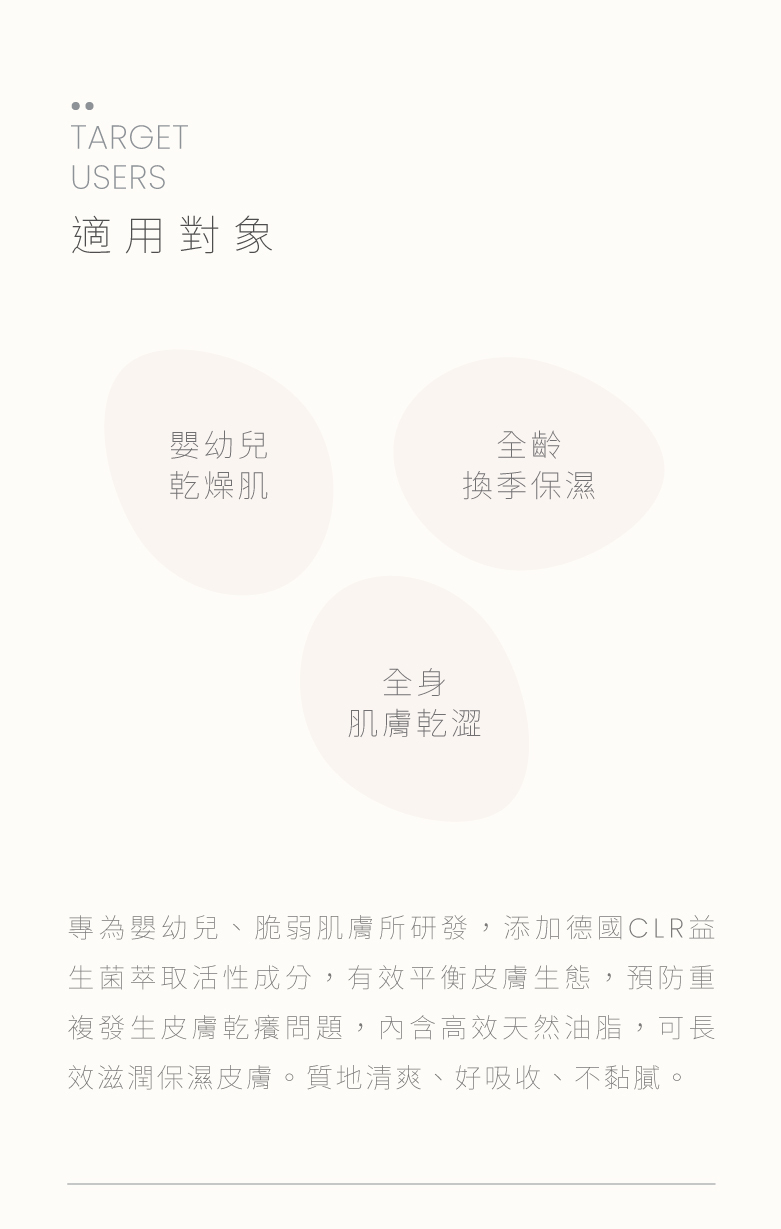 ✔ 益菌乳液成分為植物性雙甘油,高保水不厚重